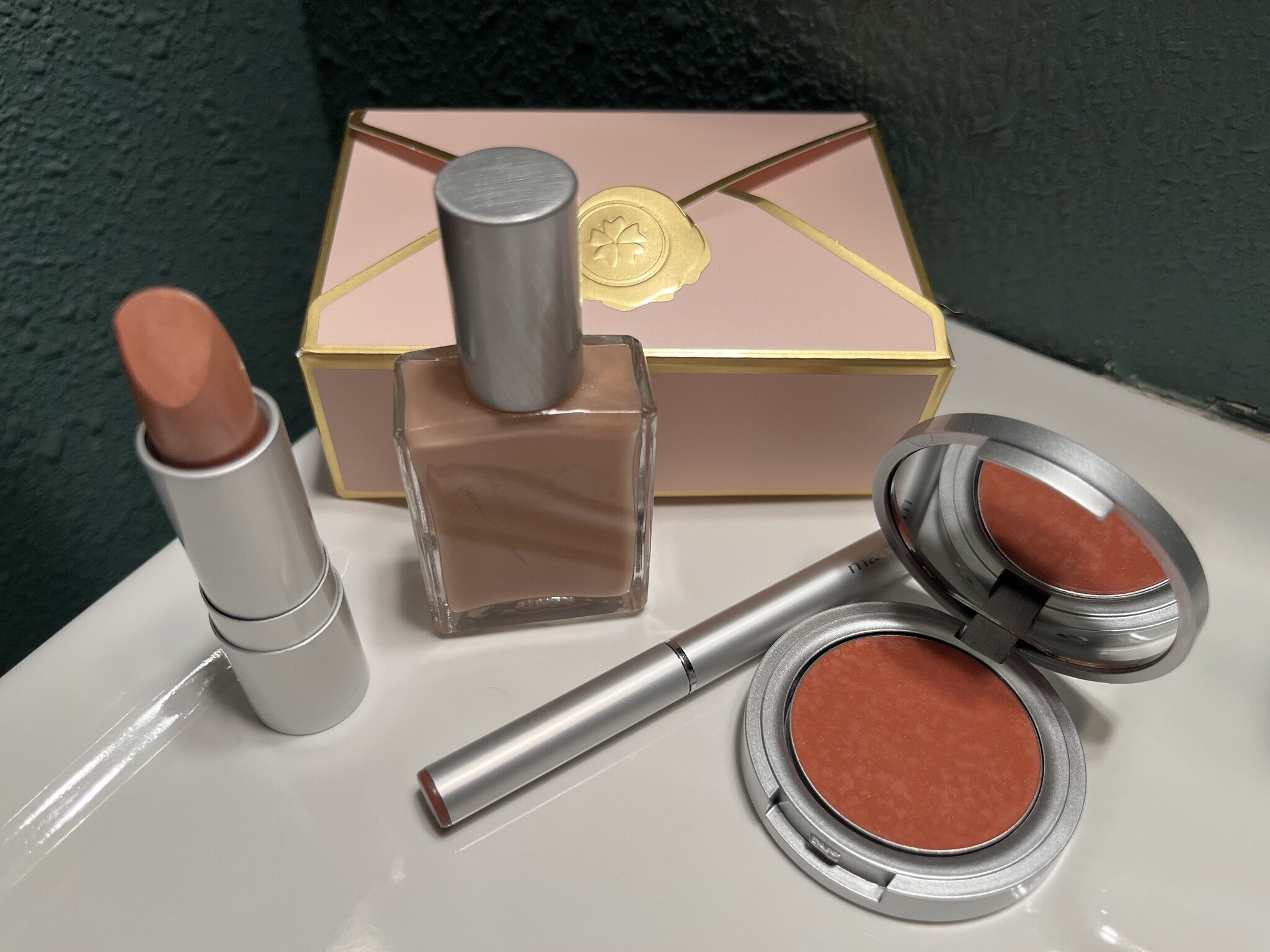 The Sugar Collection Set Includes full sizes: Colette Lipstick Barely Rose Cheek & Lip Tint Mauve Sketch Stick for Lips Sky's the Limit Nail Polish